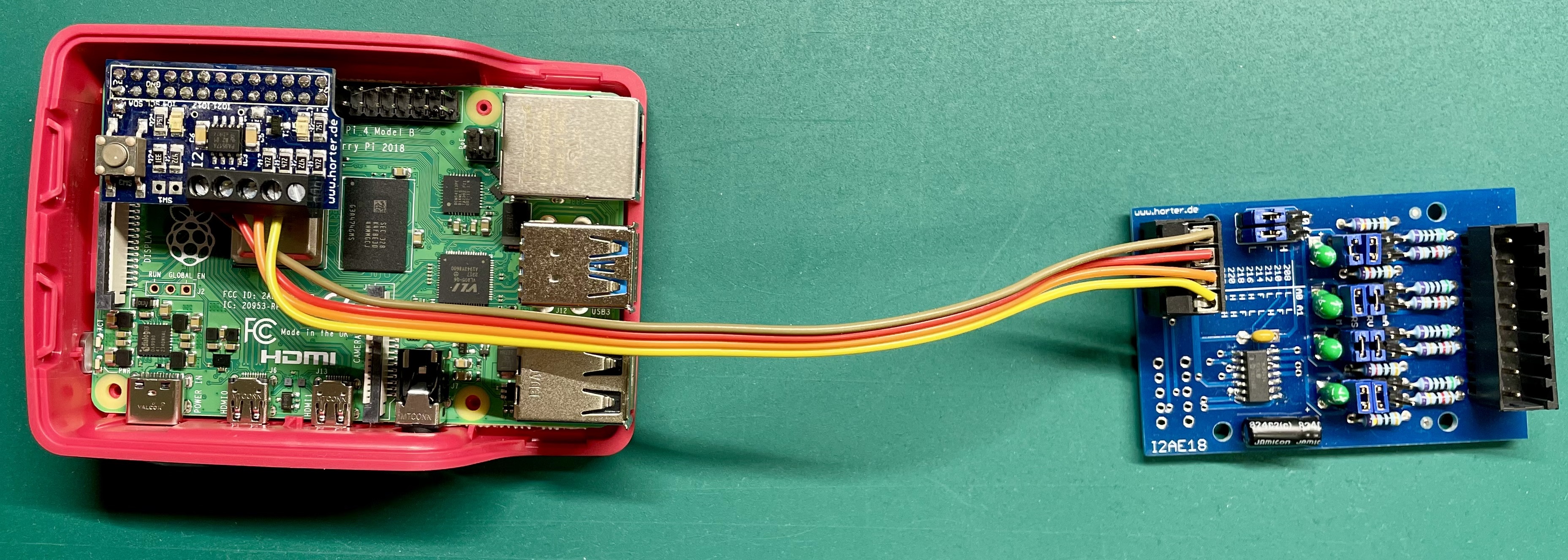 Raspi with connected sps adapter chain. This setup is ready to directly connect analog sps sensors.